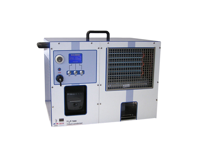 H3R 7000的取样原理是通过一个制冷程序将环境空气中的氚蒸汽冷凝成氚水来进行捕获收集。在捕获收集的同时,仪器上有一个湿度传感器实时测量周围环境空气的绝对湿度,从而精确的得到空气中每立方米中水的质量。绝对湿度单位以g/m3或ml/m3显示。